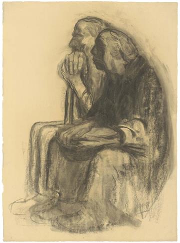Käthe Kollwitz, Selbstbildnis mit Karl Kollwitz, 1940, Kreide, gewischt, auf gelblichem Ingres-Bütten, NT 1276