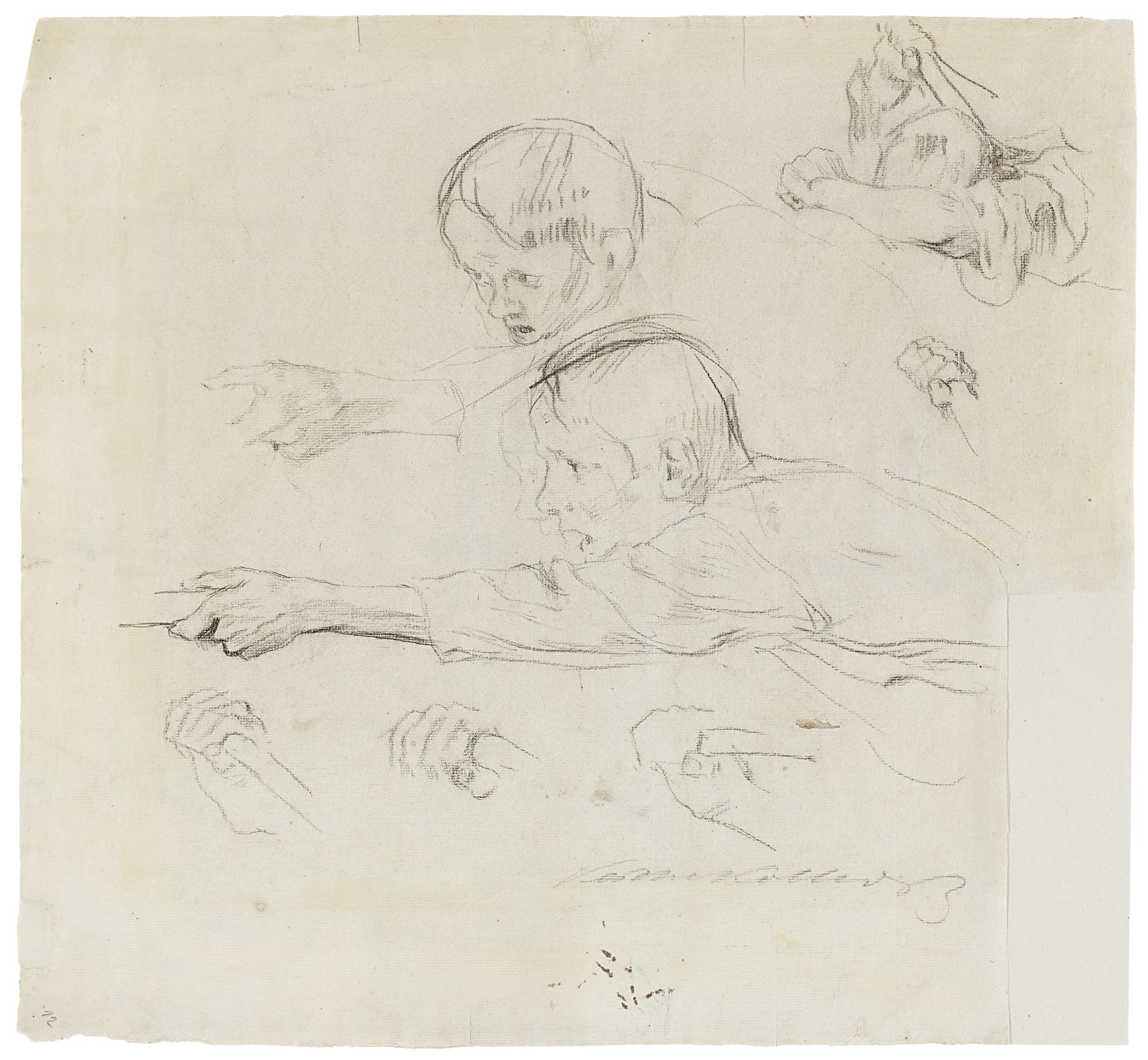 Käthe Kollwitz, Boy charging ahead towards the left, detail study for the etching »Charge«, 1902, charcoal, NT 195